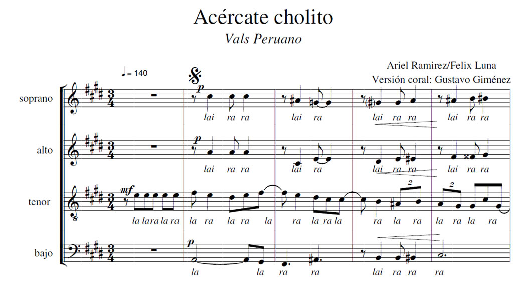 Inicio » Biblioteca Coral » Partituras SATB » Acércate cholito