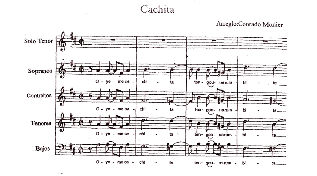 Cachita Anterior Siguiente Favorito Categorías de Archivo: Partituras SATBEtiquetas de Archivo: SATB DescripciónArchivoVideo ReferenciaRafael Hernández (Puerto Rico, 1892-1965) Conrado Monier (Cuba, 1955) Transcripción: Oscar E. Mercado Marichal (8-12-2005) SATB + solista. -----------------EmailWhatsAppFacebook 115 Cachita_SATB.pdfVideo Referencia