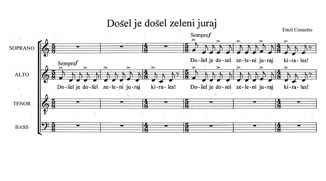 Dejó la mayor huella en el mundo coral. En 1945, fundó los coros mixtos de OKUD «Joža Vlahović» y KUD «Moša Pijade» y los dirigió durante muchos años. Colaboró con el ex «Vlahović», quien cambió su nombre a Coro Mixto «Emil Cossetto» el 1 de mayo de 1992.