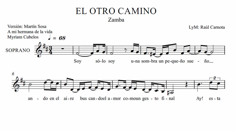 El Otro Camino Anterior Siguiente Favorito Categorías de Archivo: Partituras SATBEtiquetas de Archivo: SATB DescripciónArchivoZamba Letra y Música: Raúl Carnota Arreglo Coral: Martín Sosa (Septiembre 2019) -----------------EmailWhatsAppFacebook 154 El_otro_camino.pdf