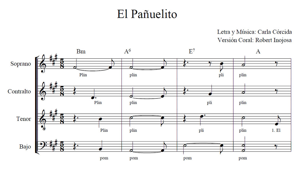El Pañuelito Anterior Siguiente Favorito Categorías de Archivo: Partituras SATBEtiquetas de Archivo: Navidad SATB DescripciónArchivoLetra y Música: Carla Córcida Arreglo Coral: Robert Inojosa -----------------EmailWhatsAppFacebook 78 El_panuelito_SATB.pdf
