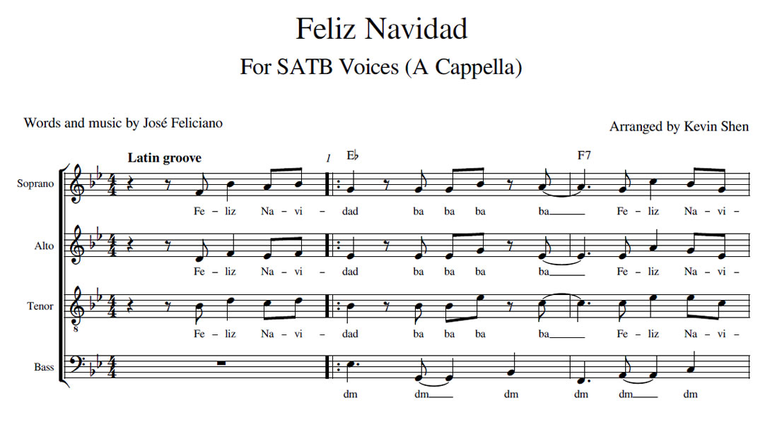 Feliz Navidad Anterior Siguiente Favorito Categorías de Archivo: Partituras SATBEtiquetas de Archivo: Navidad SATB DescripciónArchivoAudio de EstudioLetra y Música: José Feliciano Arreglo Coral: Kevin Shen -----------------EmailWhatsAppFacebook 98 Feliz_Navidad_SATB.pdfAudio de Estudio