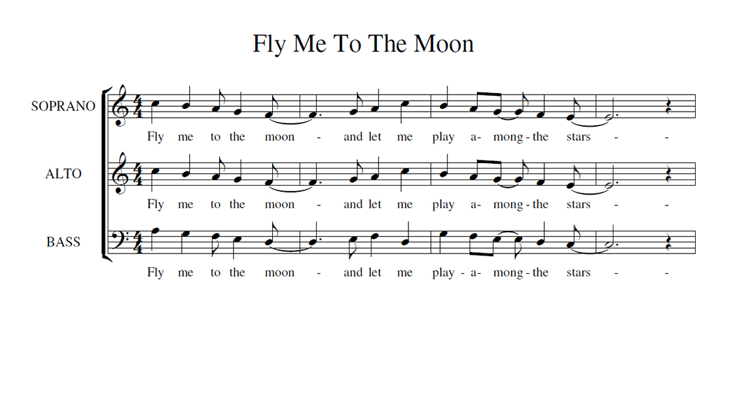 Fly Me To The Moon Anterior Siguiente Favorito Categorías de Archivo: Partituras SABEtiquetas de Archivo: SAB DescripciónArchivoLetra y Música: Bart Howard (1954) Arreglo Coral: ? -----------------EmailWhatsAppFacebook 764 Fly-me-to-the-moon_SAB.pdf