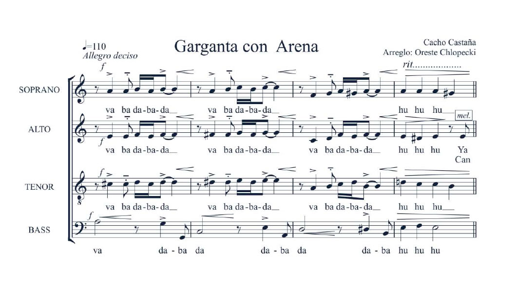 Garganta con arena Anterior Siguiente Favorito Categorías de Archivo: Partituras SATBEtiquetas de Archivo: SATB DescripciónArchivoRetribuir al ArregladorTango Letra y Música: Cacho Castaña Arreglo Coral: Oreste Chlopecki -----------------EmailWhatsAppFacebook 800 garganta_con_arena.pdf"¿Te gusta y te es útil mi arreglo? Cualquier aporte que puedas hacer seguirá alentando mi labor como arreglador. Muchas Gracias!"