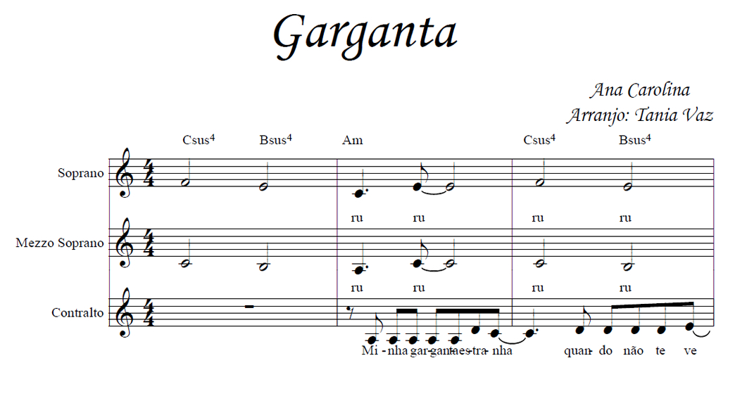 Garganta Anterior Siguiente Favorito Categorías de Archivo: Partituras Voces IgualesEtiquetas de Archivo: SMA DescripciónArchivoLetra y Música: Ana Carolina Arreglo Coral: Tania Vaz Para SMA -----------------EmailWhatsAppFacebook 165 Garganta_SMA.pdf