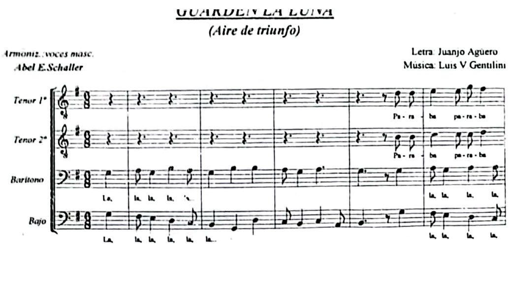 Guarden la Luna Anterior Siguiente Favorito Categorías de Archivo: Partituras Voces IgualesEtiquetas de Archivo: TTBB DescripciónArchivo(Aire de triunfo) Letra: Juanjo Agüero Música: Luis V. Gentilini Arreglo Coral: Abel E. Schaller Para TTBB -----------------EmailWhatsAppFacebook 133 Guarden_la_Luna_TTBB.pdf