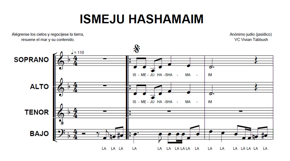Ismeju Hashamaim Anterior Siguiente Favorito Categorías de Archivo: Partituras SATBEtiquetas de Archivo: SATB DescripciónArchivoRetribuir al ArregladorAnónimo Judío (Jasídico) Arreglo Coral: Vivian Tabbush -----------------EmailWhatsAppFacebook 159 Ismeju-hashamaim.pdf"¿Te gusta y te es útil este arreglo? Cualquier aporte que puedas hacer en reconocimiento a la labor del Mtro. Vivian Tabbush irá destinado a su Familia. Muchas Gracias!"