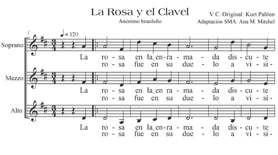 La Rosa y el Clavel Anterior Siguiente Favorito Categorías de Archivo: Partituras SABEtiquetas de Archivo: SAB DescripciónArchivoAnónimo Brasileño Arreglo Coral Original: Kurt Pahlen Adaptación: Ana M. Mitchel -----------------EmailWhatsAppFacebook 428 La-rosa-y-el-clavel_SMA.pdf