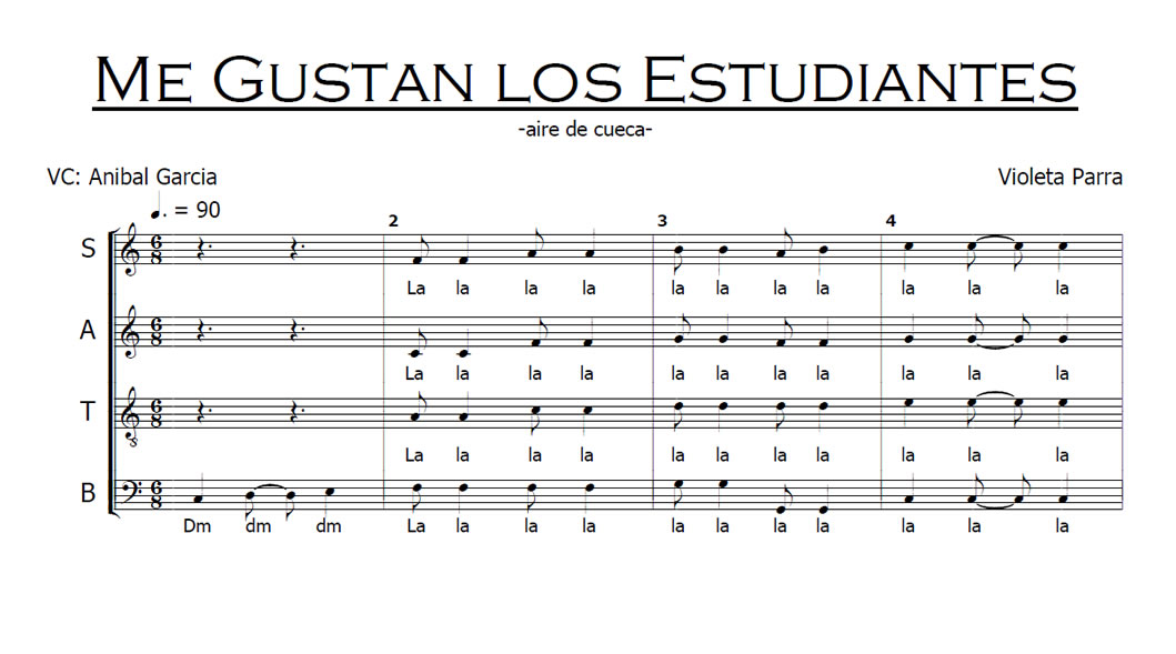 Me Gustan Los Estudiantes Anterior Siguiente Favorito Categorías de Archivo: Partituras SATBEtiquetas de Archivo: SATB DescripciónArchivoRetribuir al ArregladorAire de Cueca Letra y Música: Violeta Parra (1917-1967) Arreglo Coral: Aníbal García -----------------EmailWhatsAppFacebook 118 Me_gustan_los_Estudiantes_SATB.pdf"¿Te gusta y te es útil mi arreglo? Cualquier aporte que puedas hacer seguirá alentando mi labor como arreglador. Muchas Gracias!"