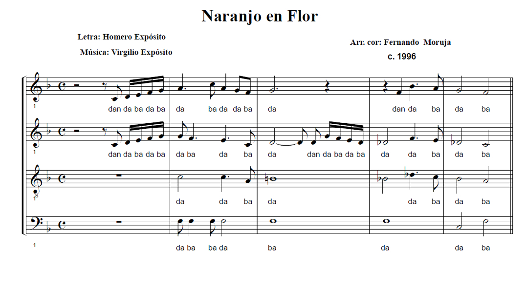 Naranjo en flor Anterior Siguiente Favorito Categorías de Archivo: Partituras SATBEtiquetas de Archivo: SATB DescripciónArchivoMidiVideo ReferenciaTango Música: Virgilio Expósito Letra: Homero Expósito Arreglo Coral: Fernando Moruja -----------------EmailWhatsAppFacebook 279 Naranjo_en_flor.pdf Naranjo_en_flor.midVideo Referencia