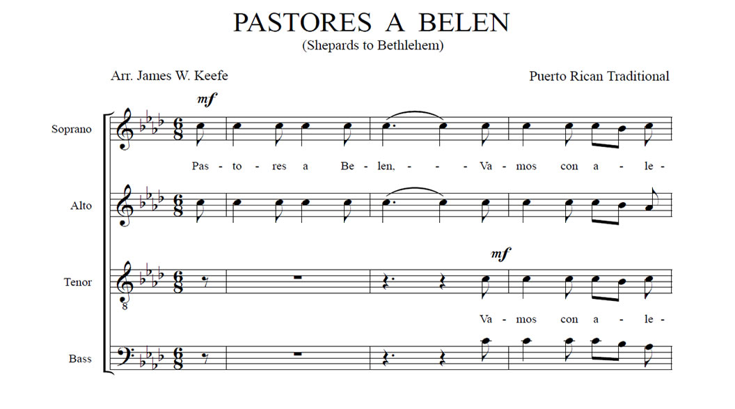 Pastores a Belén Anterior Siguiente Favorito Categorías de Archivo: Partituras SATBEtiquetas de Archivo: Navidad SATB DescripciónArchivoVillancico tradicional de Puerto Rico Arreglo Coral: James W. Keefe -----------------EmailWhatsAppFacebook 51 Pastores_a_Belen_SATB.pdf