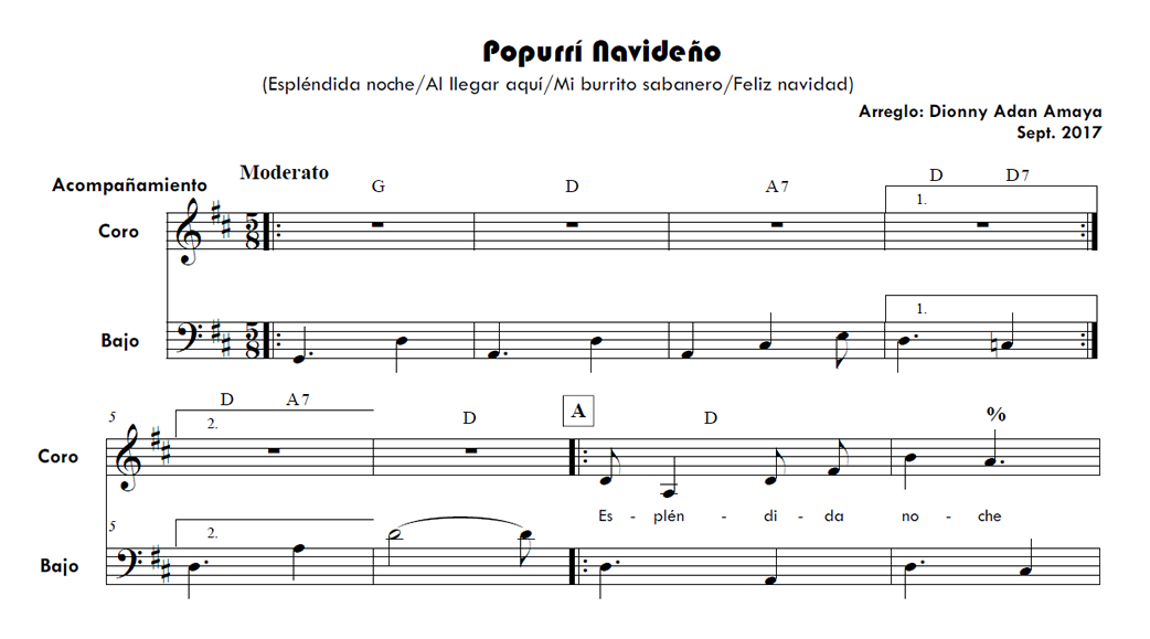 Popurrí Navideño Anterior Siguiente Favorito Categorías de Archivo: Partituras Voces IgualesEtiquetas de Archivo: Navidad Unísono DescripciónArchivoArreglo Coral: Dionny Adan Amaya (Sept. 2017) Contiene: -Espléndida noche, Ricardo Pérez -Al llegar aquí, Rec. Modesta Bor -Mi burrito sabanero, Hugo Blanco -Feliz navidad, Cheo Feliciano Para Coro de Niños al unísono + Bajo instrumental y acompañamiento. -----------------EmailWhatsAppFacebook 265 Popurri_Navideno.pdf