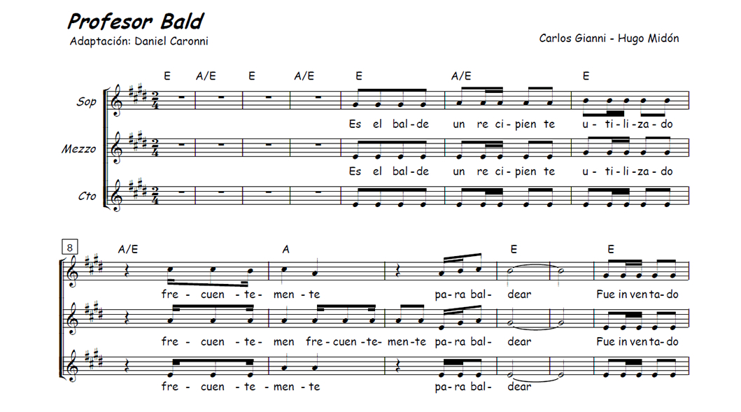 Profesor Vald Anterior Siguiente Favorito Categorías de Archivo: Partituras Voces IgualesEtiquetas de Archivo: SMA DescripciónArchivoLetra y Música: Carlos Gianni y Hugo Midón Arreglo Coral: Daniel Caronni Para SMA + Bajo instrumental, Piano y Flauta. -----------------EmailWhatsAppFacebook 57 Profesor_Bald_SMA.pdf