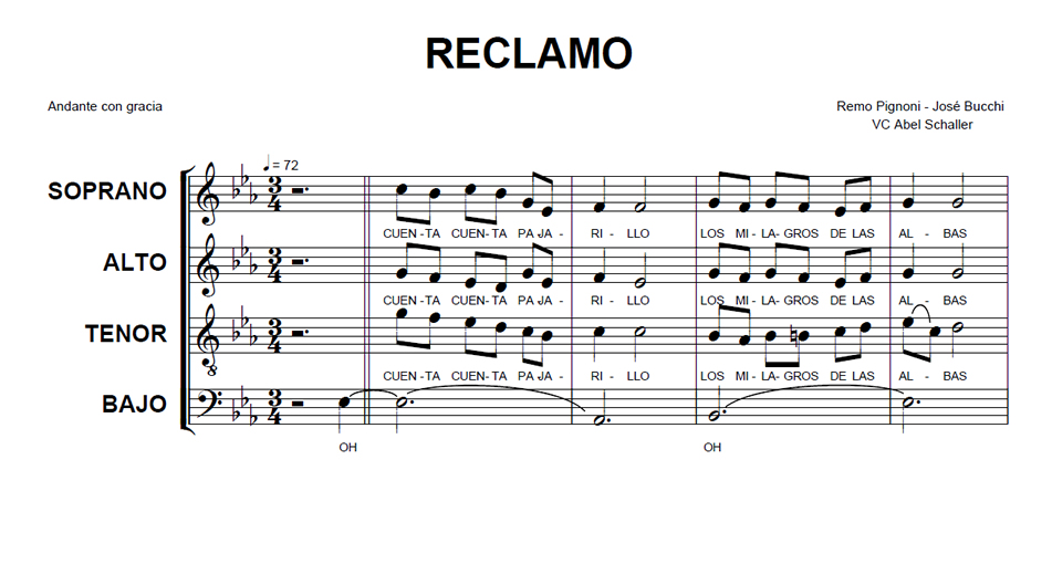 Reclamo Anterior Siguiente Favorito Categorías de Archivo: Partituras SATBEtiquetas de Archivo: SATB DescripciónArchivoLetra: José. Bucchi Música: Remo Pignoni Arreglo Coral: Abel Schaller -----------------EmailWhatsAppFacebook 81 Reclamo.pdf