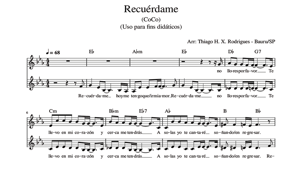 Recuérdame Anterior Siguiente Favorito Categorías de Archivo: Partituras Voces IgualesEtiquetas de Archivo: SA DescripciónArchivo(del Film «CoCo») Letra y Música: Kristen Anderson y Robert López Arreglo Coral: Thiago H. X. Rodrigues – Bauru/SP -----------------EmailWhatsAppFacebook 221 Recuerdame_SA.pdf