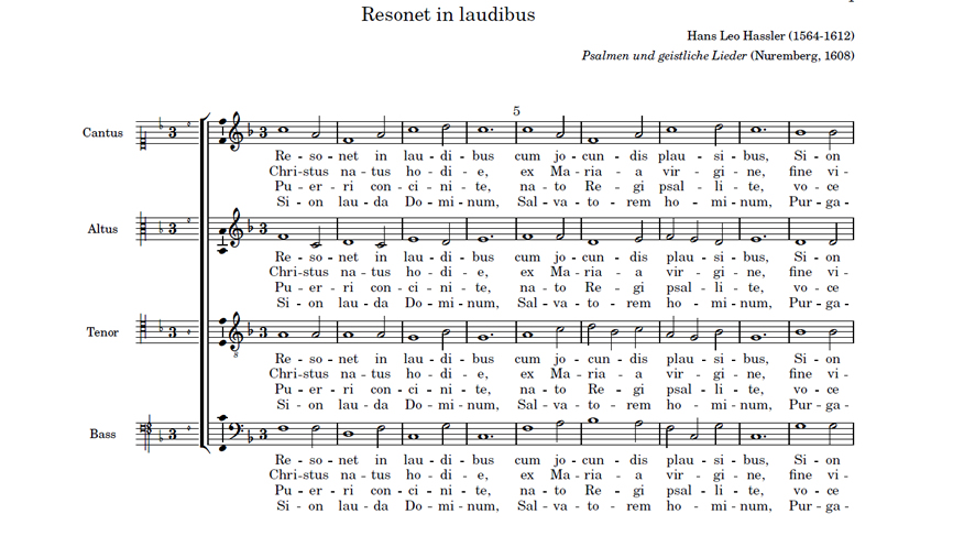 Resonet in laudibus Anterior Siguiente Favorito Categorías de Archivo: Partituras SATBEtiquetas de Archivo: Navidad SATB DescripciónArchivoVideo ReferenciaHans Leo Hassler (1564-1612) Psalmen und geistliche Lieder (Nuremberg, 1608) Villancico del siglo XIV -----------------EmailWhatsAppFacebook 130 Resonet-in-laudibus_Hassler.pdfVideo Referencia