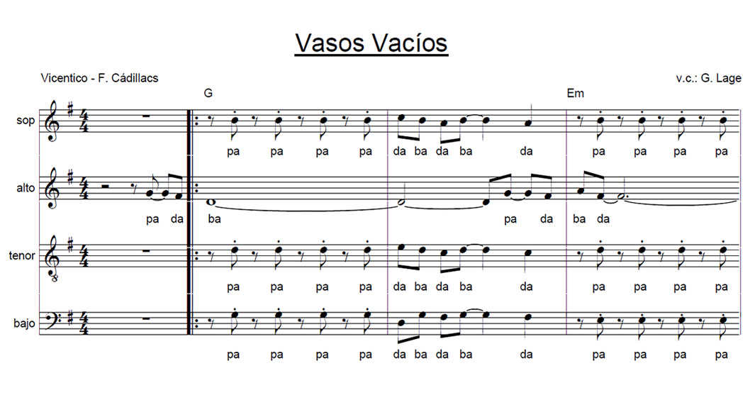 Vasos Vacíos Anterior Siguiente Favorito Categorías de Archivo: Partituras SATBEtiquetas de Archivo: SATB DescripciónArchivoVicentico (Los Fabulosos Cadillacs) Arreglo Coral: Gabriel Lage -----------------EmailWhatsAppFacebook 139 Vasos_vacios_SATB.pdf