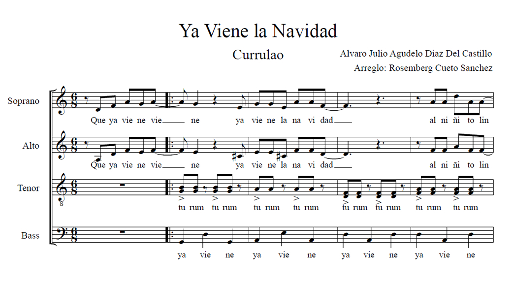 Ya Viene la Navidad Anterior Siguiente Favorito Categorías de Archivo: Partituras SATBEtiquetas de Archivo: Navidad SATB DescripciónArchivoCurrulao (Colombia) Alvaro Julio Agudelo Diaz Del Castillo Arreglo Coral: Rosemberg Cueto Sanchez -----------------EmailWhatsAppFacebook 113 Ya_viene_la_navidad_SATB.pdf