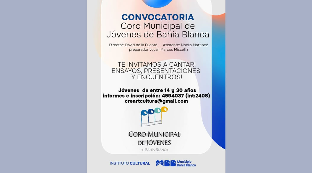 Inicio » Avisos Corales » Coro Busca Cantante » CONVOCATORIA ABIERTA | Coro Municipal de Jóvenes de Bahía Blanca