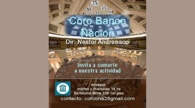 CORO BANCO NACIÓN te invita a sumarte! Anterior Siguiente Categorías de Aviso: Coro Busca CantanteEtiquetas de Aviso: Buenos Aires DetallesMailZonaFlyer/imagenCoro Banco Banco Nación Dir. Néstor Andrenacci TE INVITA a sumarte! Ensayos: Martes y Miércoles, 18 hs. Lugar: Bartolomé Mitre 326, 1er. piso, CABA. +INFO: corobna25@gmail.com -----------------EmailWhatsAppFacebook 79 corobna25@gmail.comCiudad de Buenos Aires