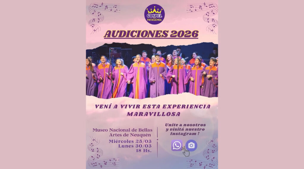 Inicio » Avisos Corales » Coro Busca Cantante » Gospel en la Patagonia AUDICIONES 2026