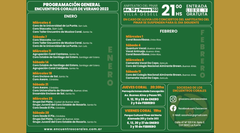 54° Encuentros Corales de Verano | Anfiteatro del Pinar, VILLA GESELL, Bs. As.