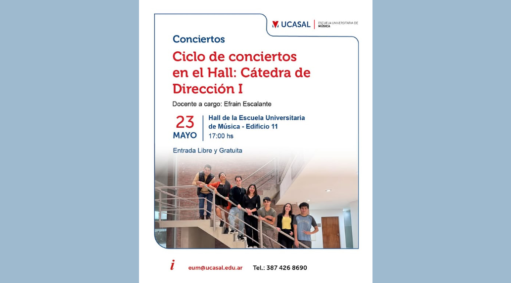 Inicio » Eventos Corales » Argentina » Salta » Salta » Concierto » CICLO DE CONCIERTOS EN EL HALL «Cátedra de Dirección I» | Hall de la Escuela Universitaria de Música UCASAL, Campo Castañares, SALTA