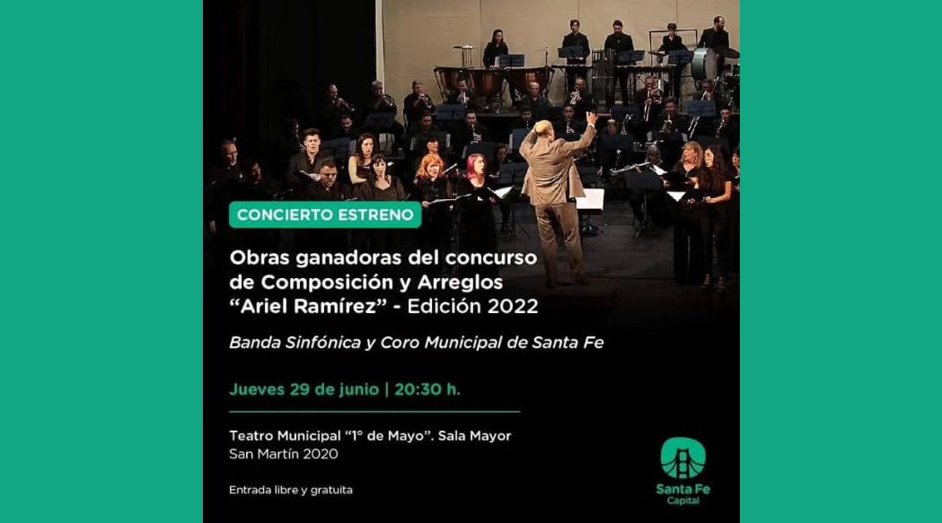 CONCIERTO ESTRENO Obras ganadoras del Concurso de Composición y Arreglos "Ariel Ramírez" | Teatro Municipal 1° de Mayo, SANTA FE