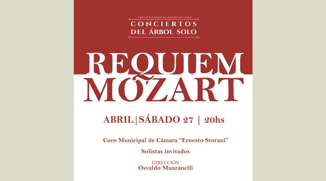 CONCIERTOS DEL ÁRBOL SOLO | Coro Municipal de Cámara "Ernesto Storani" | Santuario Ntra. Sra. de Luján, LUJÁN, Bs. As. Anterior Siguiente Categorías de Evento: Concierto InfoGalería de ImágenesCONCIERTOS DEL ÁRBOL SOLO *Coro Municipal de Cámara «Ernesto Storani» Dir. Osvaldo Manzanelli Sábado 27 de Abril, 20 hs. Santuario Ntra. Sra. de Luján, San Martín 51, LUJÁN, Bs. As. -----------------EmailWhatsAppFacebook 62