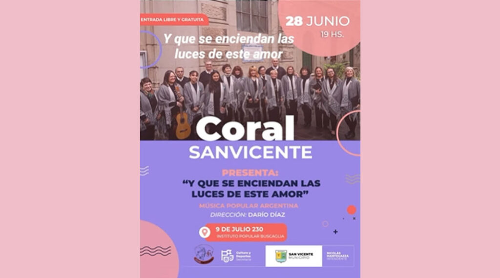 Inicio » Eventos Corales » Argentina » Provincia de Buenos Aires » San Vicente » Concierto » CORAL SAN VICENTE «Música Popular Argentina» | Instituto Buscaglia, SAN VICENTE, Bs. As.