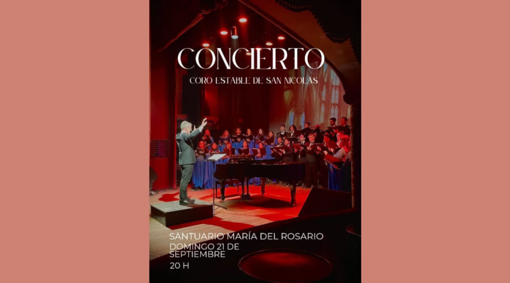 Coro Estable de San Nicolás | Santuario María del Rosario, SAN NICOLÁS, Bs. As. Anterior Siguiente Categorías de Evento: Concierto InfoGalería de ImágenesCONCIERTO *Coro Estable de San Nicolás Dir. Gonzalo Javier Martín Domingo 21 de Septiembre, 20 hs. Santuario María del Rosario, Domingo Faustino Sarmiento 365, SAN NICOLÁS, Bs. As. -----------------EmailWhatsAppFacebook 14