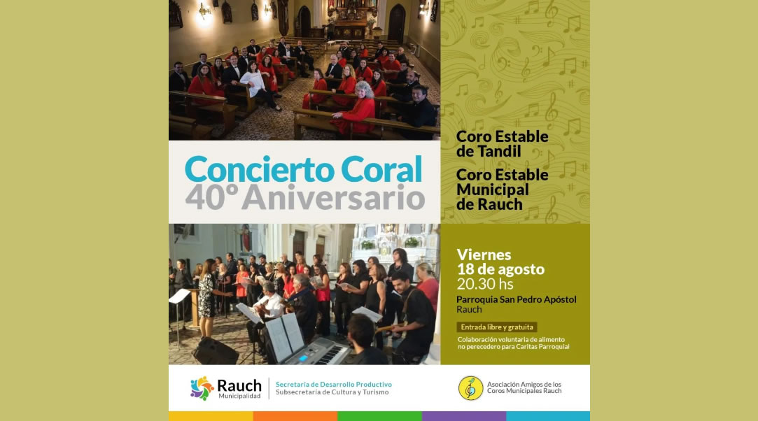 Inicio » Eventos Corales » Argentina » Provincia de Buenos Aires » Rauch » Concierto » Coro Estable de Tandil & Coro Estable Municipal de Rauch | Parroquia San Pedro Apóstol, RAUCH, Bs. As.