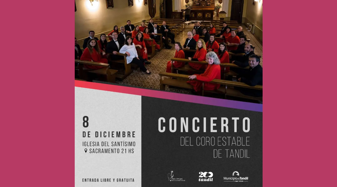 CORO ESTABLE DE TANDIL | Iglesia del Santísimo Sacramento, TANDIL, Bs. As. Anterior Siguiente Categorías de Evento: Concierto InfoGalería de Imágenes*CORO ESTABLE DE TANDIL Dir. Annele Moroder Viernes 8 de Diciembre, 21 hs. Iglesia del Santísimo Sacramento Belgrano 511, TANDIL, Bs. As. Entrada libre y gratuita. -----------------EmailWhatsAppFacebook 29