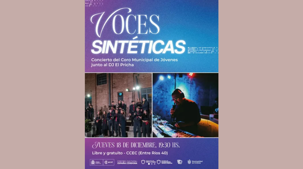 Te invitamos a disfrutar en nuestro patio una experiencia que combina la fuerza colectiva del Coro de Jóvenes de la Municipalidad de Córdoba con los sonidos y texturas de la música electrónica contemporánea a cargo de El Pricha