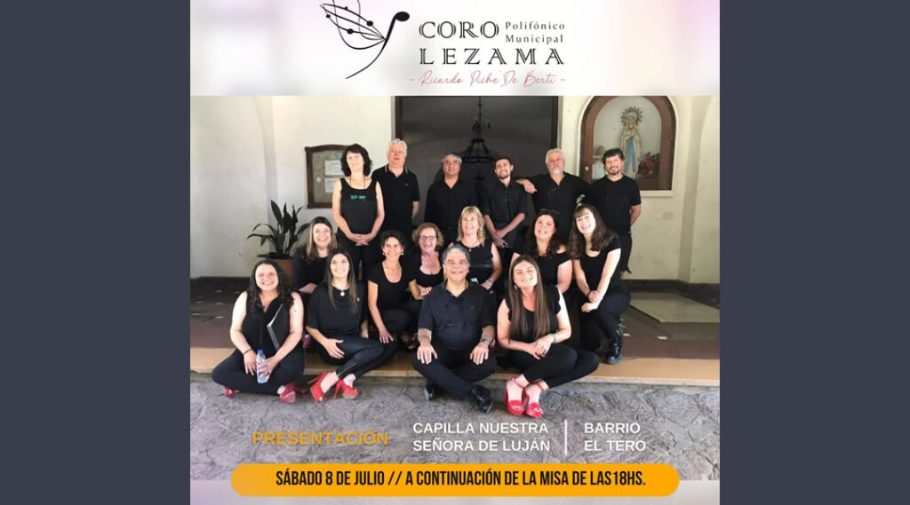 Coro Polifónico Municipal Lezama "Ricardo Piche De Berti" | Capilla Nuestra Señora de Luján, LEZAMA, Bs. As. Anterior Siguiente Categorías de Evento: Concierto InfoGalería de Imágenes*Coro Polifónico Municipal Lezama «Ricardo Piche De Berti» Dir. Oreste Chlopecki Sábado 8 de Julio, 18 hs. (A continuación de la Misa) Capilla Nuestra Señora de Luján, Barrio El Tero, LEZAMA, Bs. As. -----------------EmailWhatsAppFacebook 55