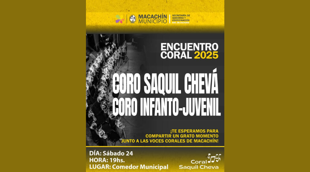 Inicio » Eventos Corales » Argentina » La Pampa » Macachin » Encuentro Coral » ENCUENTRO CORAL 2025 | Comedor Municipal, MACACHÍN, La Pampa