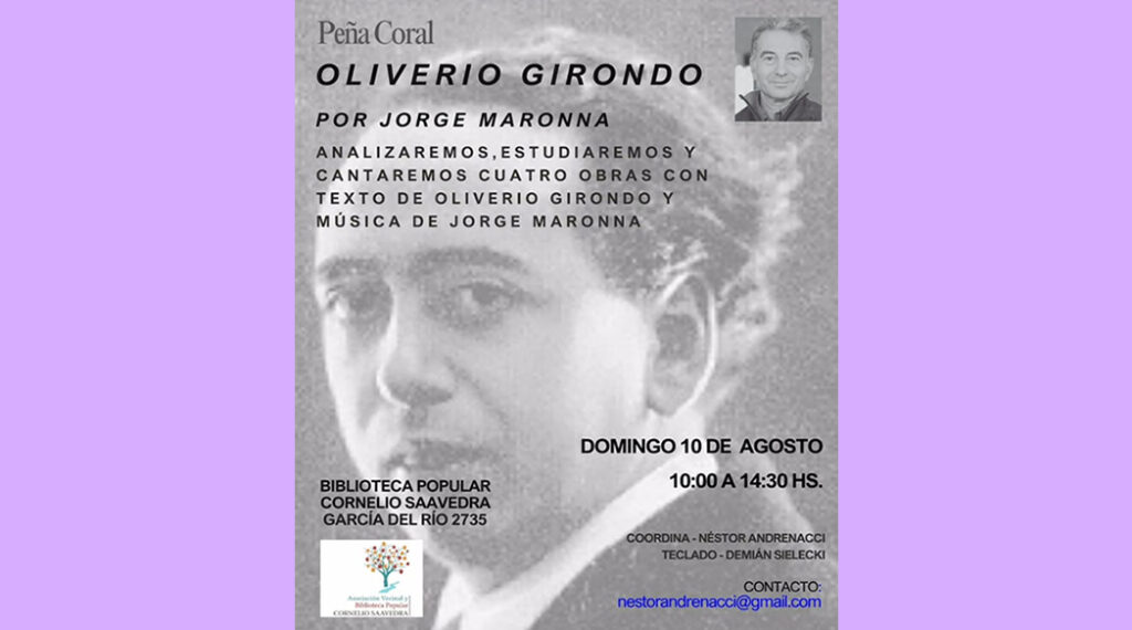 OLIVERIO GIRONDO (1891-1967)Analizaremos, estudiaremos y cantaremos cuatro obras con texto de Oliverio Girondo y música de Jorge Maronna.