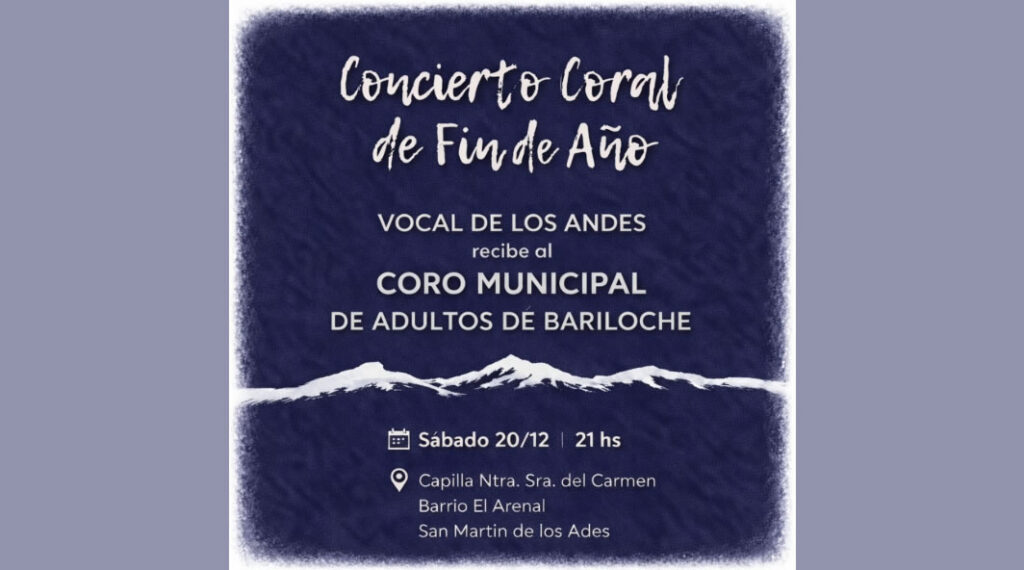 Inicio » Eventos Corales » Argentina » Neuquén » San Martin de los Andes » Concierto » Vocal de los Andes & Coro Municipal de Adultos de Bariloche | Capilla Ntra. Sra. del Carmen, Barrio El Arenal, SAN MARTÍN DE LOS ANDES, Neuquén