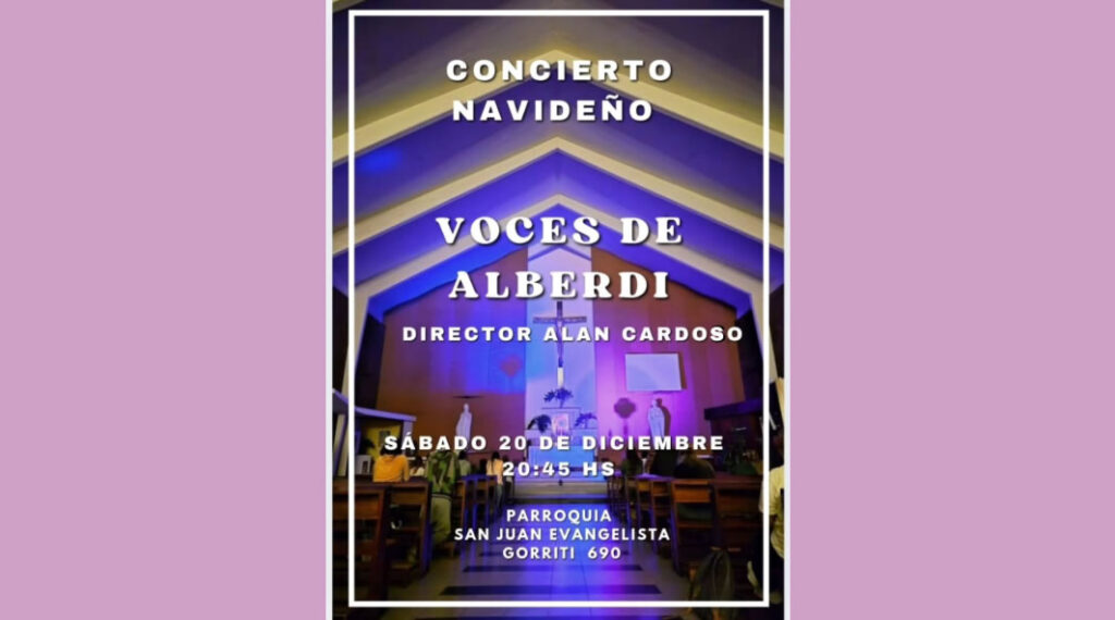 Voces de Alberdi "CONCIERTO NAVIDEÑO" | Parroquia San Juan Evangelista, ROSARIO, Santa Fe Anterior Siguiente Categorías de Evento: Concierto InfoGalería de Imágenes«CONCIERTO NAVIDEÑO» *Voces de Alberdi Dir. Alan Cardoso Sábado 20 de Diciembre, 20.45 hs. Parroquia San Juan Evangelista Gorriti 690, ROSARIO, Santa Fe -----------------EmailWhatsAppFacebook 23